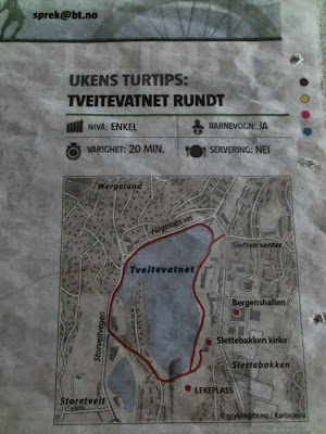 Sprek-sidene i Bergens tidende pleier å ha et turtips hver søndag. Ofte en fire timers tur til en topp langt borte. På en grå dag som i dag, da man helst vil være inne hele dagen, presenterer BT dette turtipset. Den antatte varigheten stemmer på minuttet når vi tar utgangspunkt hjemme hos oss. Vi spanderte 20 minutter.